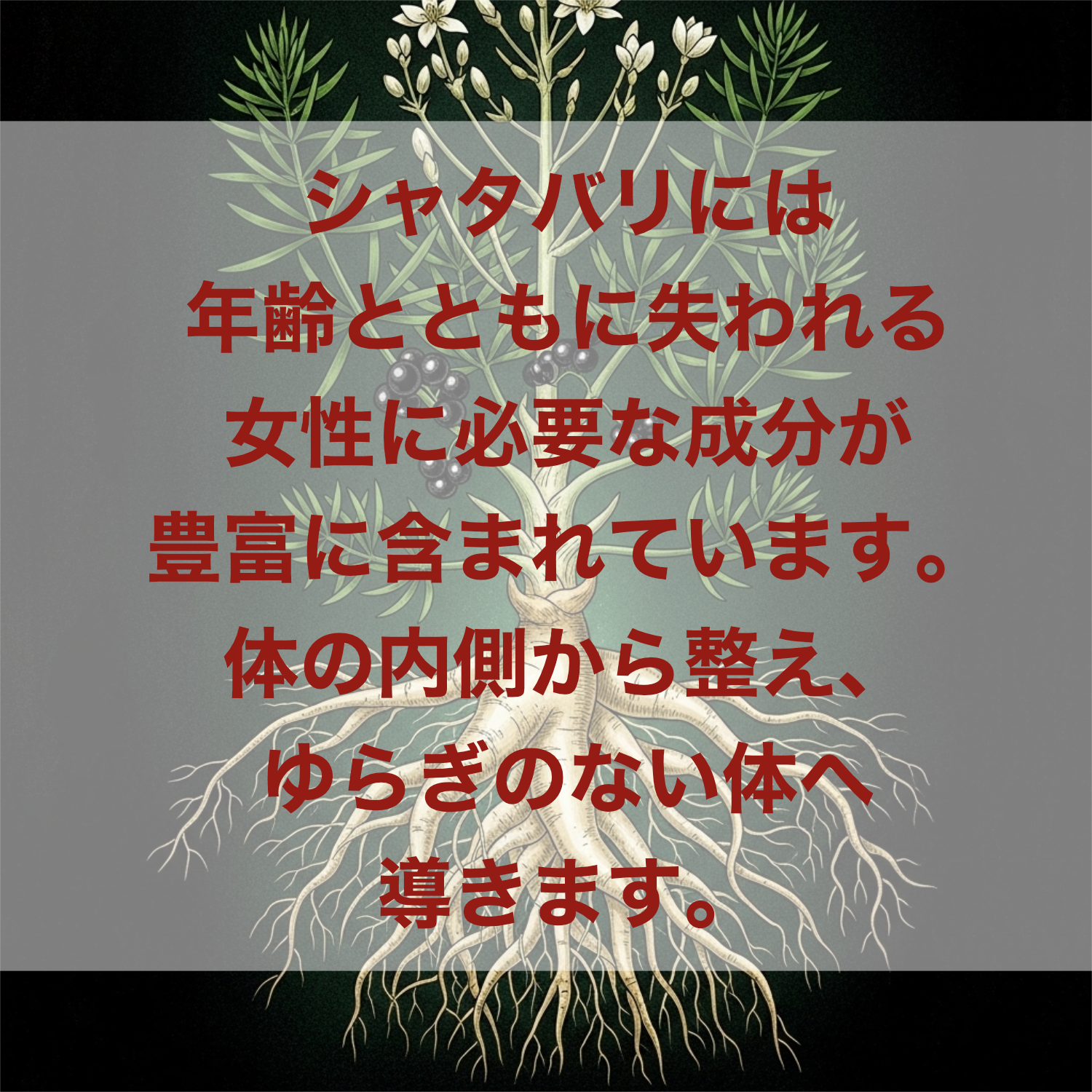 “百人の夫を持つ”という意味をもつアーユルヴェータの中でも、女性のためのハーブとして古くか ら利用されているシャタバリを配合しました。さらに、総サポニンが重量比20%以上含有されて いる良質なシャタバリを使用しています。