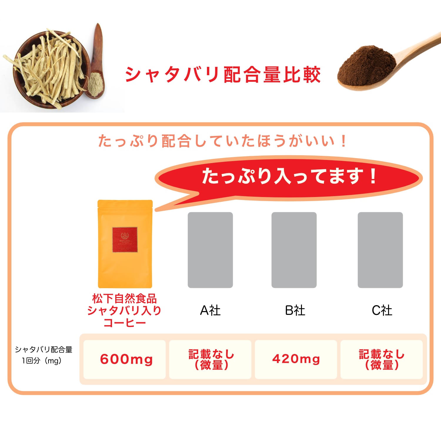 当商品に使用しているシャタバリは、市販の一般的なシャタバリ粉末とは異なります。シャタバリの根から有効成分を丁寧に抽出したエキスを、特殊な技術で乾燥させた高濃度粉末を採用しています。これにより、1杯あたり600mgのシャタバリを効率的に摂取可能。植物の自然な力を最大限に引き出し、女性の体調を内側からサポートします。添加物不使用で、毎日のコーヒータイムを健康的にアップグレード。体を整えたい方に最適です。
